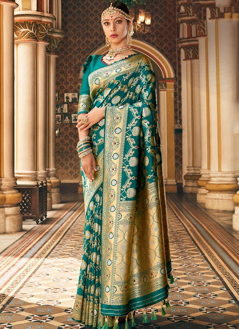 Paithani sarees, often referred to simply as "Paithanis," are a type of traditional handwoven silk saree originating from the town of Paithan in Maharashtra, India. These sarees are highly renowned for their intricate craftsmanship, vibrant colors, and historical significance. Paithani sarees are known for several distinctive features: